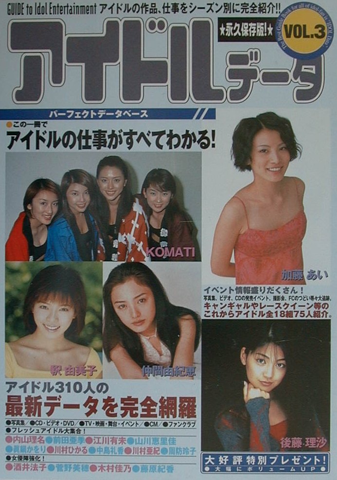 アイドルデータVol.3価格: 1,470円レビュー評価: 0.0 レビュー数:0 出版社:クラブハウスサイズ:単行本発行年月:2000年08月【内容情報】(「BOOK」データベースより)本誌は、女性アイドルの最近の作品と仕事をできる限りたくさん紹介するスタイルを取っています。今号では、2000年4月以降の作品を対象としています。写真集、雑誌、CD、ビデオ、グッズ、TV、映画、CM、イベントなどなど、情報を幅広くキャッチしています。またファンクラブのデータや、インターネットの情報も掲載しました。作品と仕事については、一つ一つの内容について、それぞれデータを詳しく紹介しています。【目次】(「BOOK」データベースより)ベストアイドル17?今が旬のベストアイドル17人の作品・仕事 |
